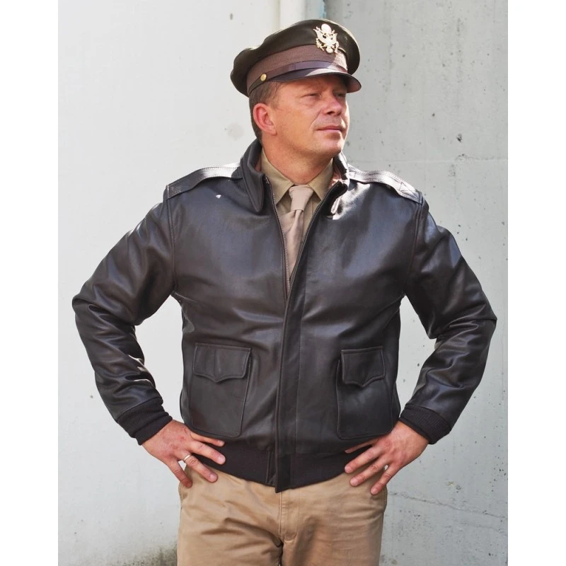 C’est le 9 mai 1931, que le flight jacket “type A2” est standardisé par les laboratoires de la “ CLOTHING BRANCH » de l’Army Air Forces. Enfant des années 30, ce blouson va révolutionner le look « militaire ». Enfant fétiche des aviateurs Américains, il est porté sur tous les fronts : pacifique et européen, chez les pilotes de l’AVG du Général Chennault en Chine, jusqu’aux équipages des bombardiers de la 8 ème Air Force, basés en Grande-Bretagne.