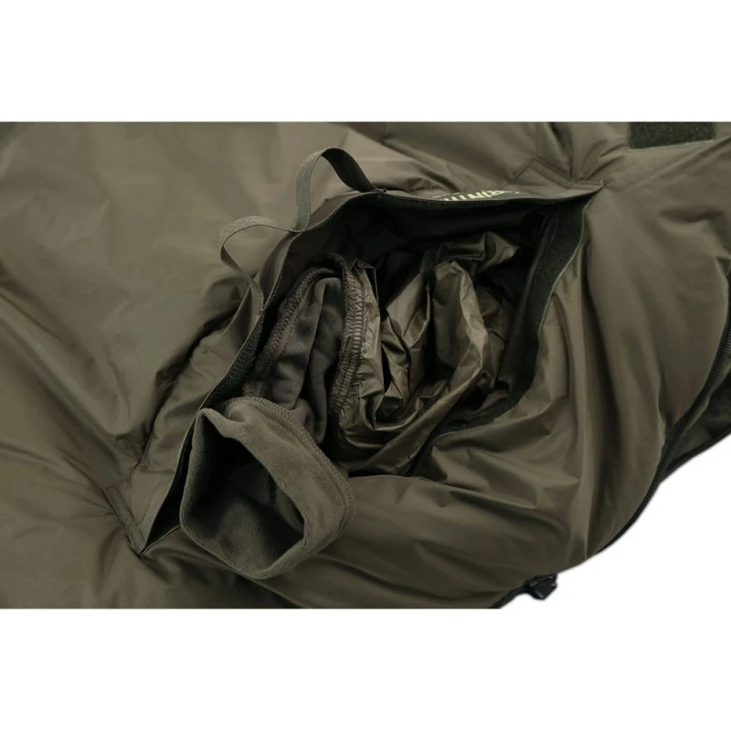 Lorsque les deux fermetures sont fermées, l’espace intérieur à chauffer est réduit tandis que le coussin d’air isolant entre les couches extérieures et intérieures devient plus important, rendant ainsi le sac plus chaud. Quand on ouvre un peu le bas de la fermeture, on peut sortir les pieds. La partie inférieure peut être retenue pour pouvoir porter de sac comme un manteau.