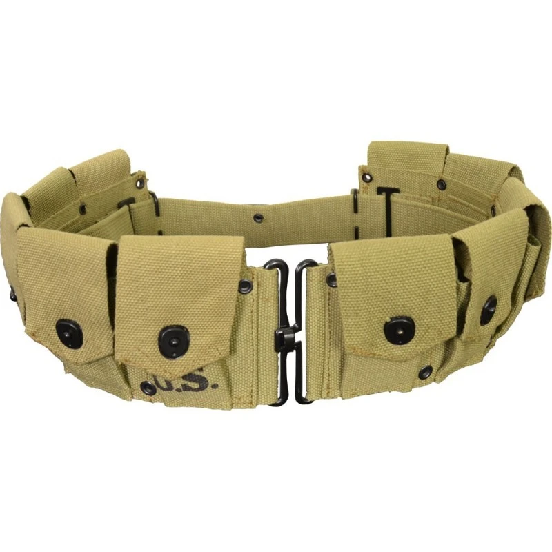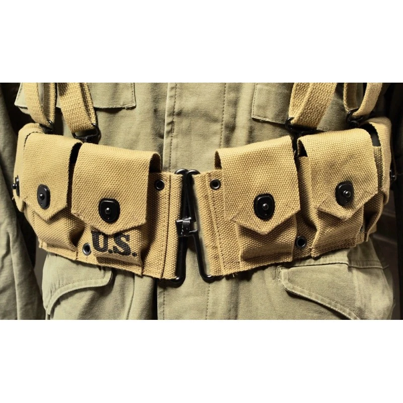 Voici une magnifique reproduction du ceinturon Garand US, modèle 1923 (10 poches) qui équipa les GI’s durant la Seconde Guerre Mondiale