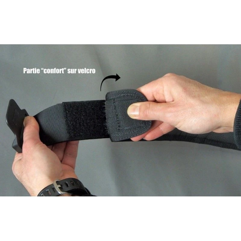 • Système de deux ceintures : 1 ceinture de confort velcro mâle amovible (peut être