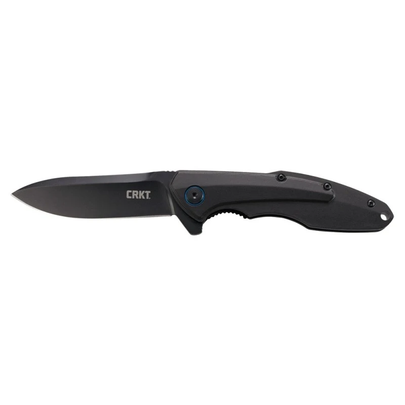 Lame noire acier 8Cr14MoV avec « flipper » et cran intérieur, aluminium anodisé noir, avec clip