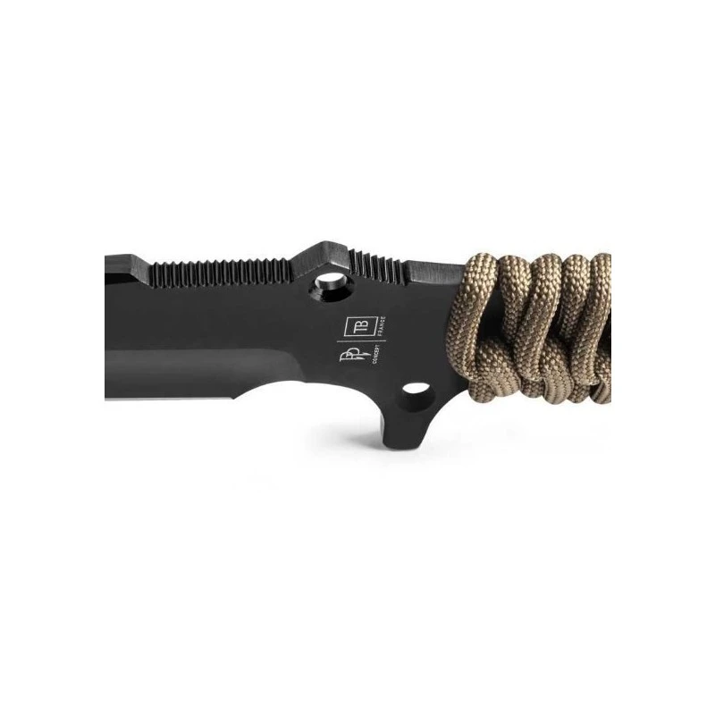 Le gainage du manche en Paracord 550® de qualité militaire (résistance à la rupture mini 250 Kg), assure une prise en main douce, confortable, mais sûre dans toutes les conditions.