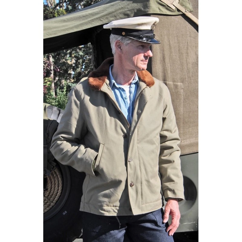 Vêtements de prédilection des chiens jaunes armuriers et autres mécaniciens de piste. Il vous est proposé dans sa version modèle 1945 en khaki, USN sur le devant. Fabrication française.
