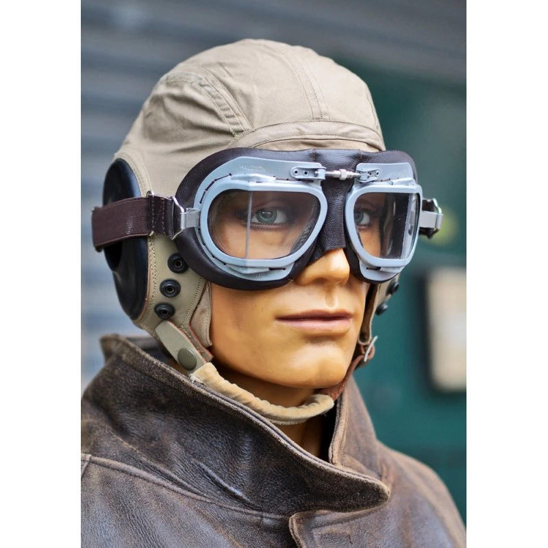 et masque rembourré cousus main en cuir et plastique souple.