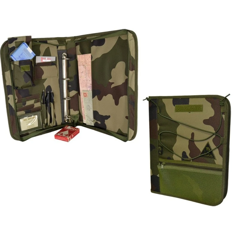 porte-stylos, poches de rangement et classeur A4 à anneaux en interne.