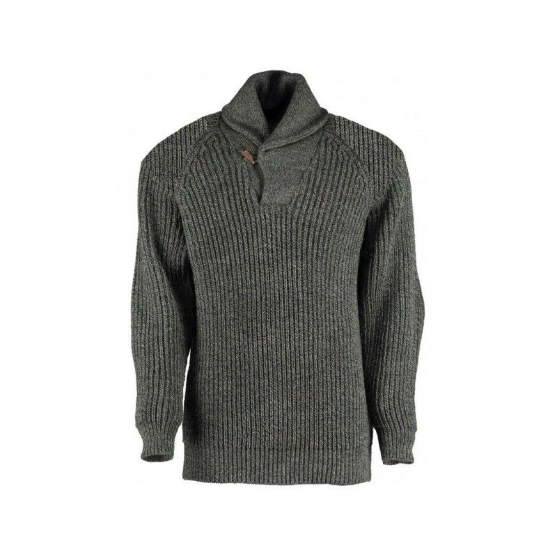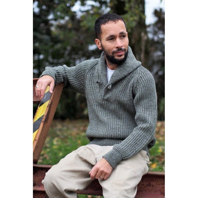 Pull col châle avec une véritable fermeture en corne de bufle naturelle.