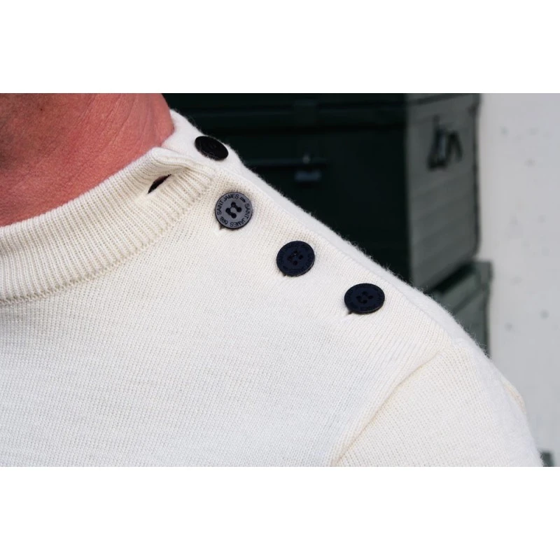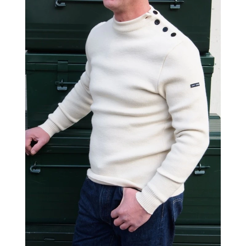 Pull  matelot U  original de la marque SAINT JAMES 100 % laine, vous apprécierez ce vêtement aux finitions soignées et au confort incomparable reconnu par le monde marin.